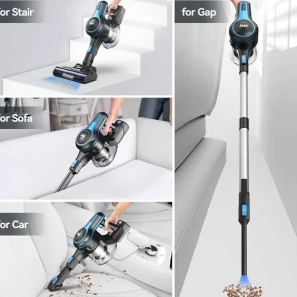 6-i-1 med rika tillbehör Den sladdlösa dammsugaren INSE N5T har flera tillbehör som gör att den kan utföra 6 olika kombinationer, och det finns inga problem med att städa golvet, soffan, gardinen, skrivbordet och andra utrymmen.