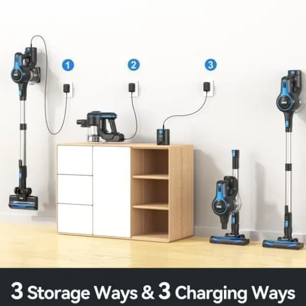 55 minuters kontinuerlig drift Denna påslösa dammsugare med batteri är utrustad med ett utbytbart 2200 mAh litiumjonbatteri, som har längre livslängd och lägre felprocent än traditionella batterier. I standardläge har denna dammsugare en driftstid på upp till 55 minuter och ett städområde på upp till 2000 kvadratfot.