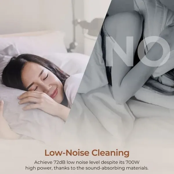 Trots sin starka sugkraft och starka klappning arbetar denna sängdammsugare med en låg ljudnivå på endast 72 dB. Maskinens högmolekylära ljudabsorberande material säkerställer att den presterar tillräckligt för att avlägsna dammkvalster och bakterier utan att störa dig och dina nära och kära.