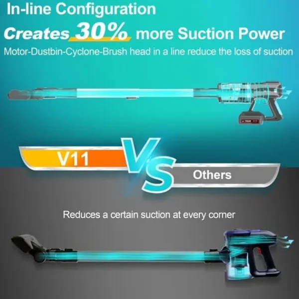 Kraftfull borstlös motor: UMLo V11 har en 300 W borstlös motor med upp till 30 kPa sugkraft – tar effektivt bort damm, smuts och djurhår från både hårda golv och mattor.