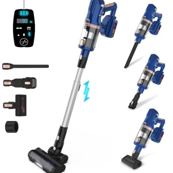2-i-1 multifunktionell design: Kan enkelt växlas mellan skaftdammsugare och handdammsugare. Perfekt för golv, möbler, trappor och bilinteriörer.