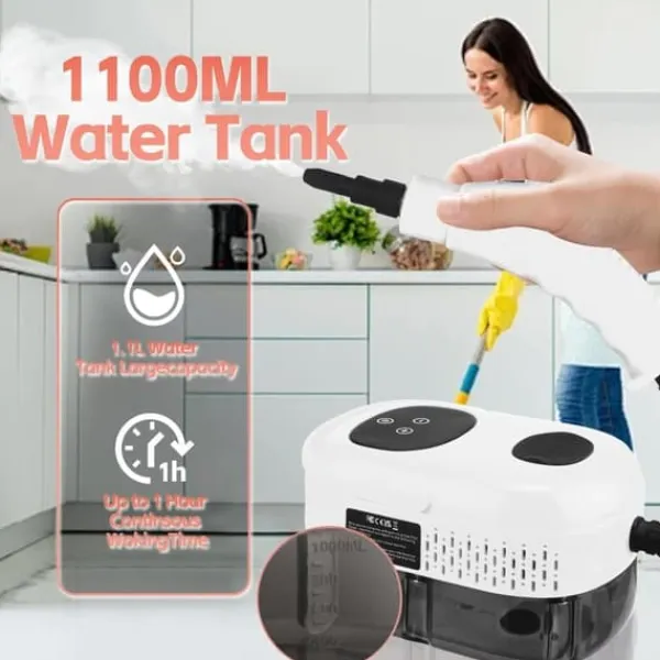 2500W ångtvätt med 3BAR tryck, 1100ml tank och 9 tillbehör för djuprengöring av alla ytorKraftfull ångprestanda