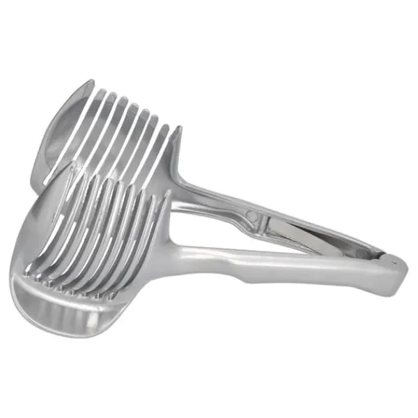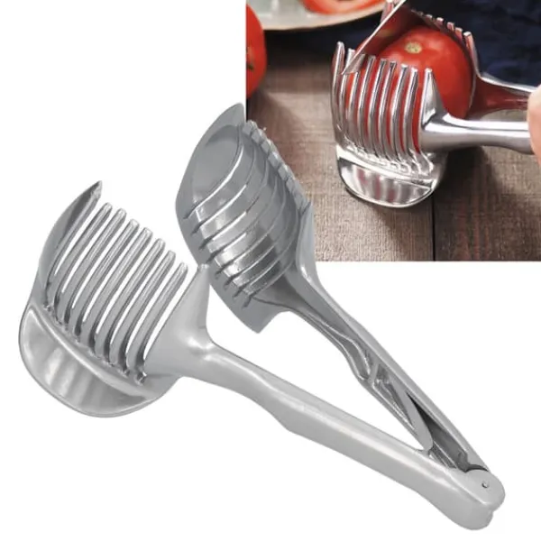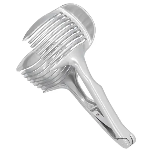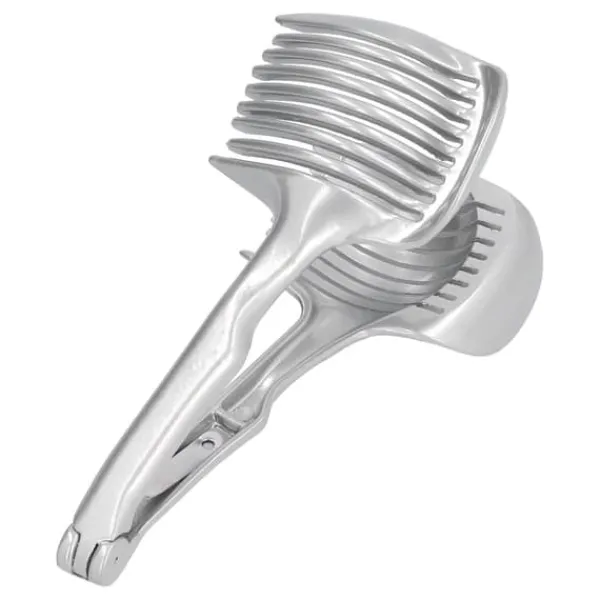 Välkommen till vår butik! Denna högkvalitativa lökskärare är tillverkad av livsmedelsklassat rostfritt stål, vilket garanterar styrka, hållbarhet och en miljövänlig och hälsosam design för långvarig användning. Den har en säker klämma, perfekt för att hålla tomater, lök, citroner, citrusfrukter, apelsiner, lime och andra runda frukter och grönsaker. Klämman fungerar också som en säker och hållbar mathållare som motstår deformation. Med sin säkerhetsfokuserade design greppar skäraren ordentligt runda produkter för att skydda dina fingrar från skador, vilket möjliggör snabb och effektiv skivning för att förbättra din matlagningsupplevelse. Den rostfria konstruktionen i rostfritt stål säkerställer enkel, jämn skivning varje gång, vilket gör den säker och pålitlig för att skära en mängd olika frukter och grönsaker. Användningen är enkel: tryck på låskroken för att öppna enheten, sätt i maten, dra i låsmekanismen för att säkra den, håll skäraren med ena handen och skiva med en kniv med den andra handen. Produkten mäter cirka 18×8 cm (7,1×3,1 tum), väger cirka 138 g (4,9 oz) och har en elegant silverfinish. Ditt köp inkluderar 1 lökskärare. Nöjdhet: Våra kunder är vår högsta prioritet. Om du upptäcker några produktproblem efter att du mottagit varorna, såsom skador eller felaktig mängd varor, vänligen kontakta säljaren omedelbart. Vi gör vårt bästa för att ge dig tillfredsställande kundservice.