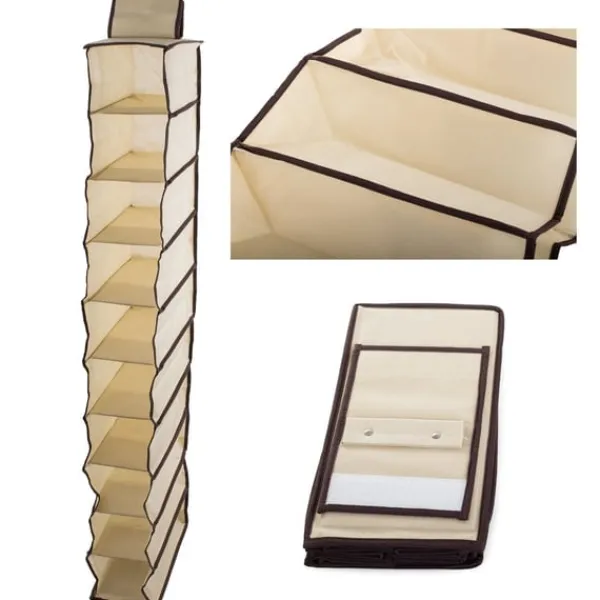 Den hängande förvaringen med 10 hyllplan är en smart lösning för att maximera utrymmet i garderoben. Med sina tio nivåer hjälper den dig att hålla ordning på kläder, skor och sängkläder samtidigt som den skyddar mot damm och andra yttre faktorer. Den är idealisk för att skapa en ren och organiserad förvaringsmiljö, både i små och stora garderober.
