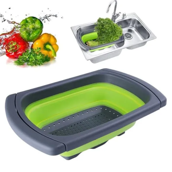 Durkslag och silar tar ofta stort utrymme i köksskåpen, men detta smarta hopfällbara durkslag tar minimal plats vid förvaring. Det är perfekt för att separera kokvatten eller annan vätska från pasta, grönsaker med mera, och den praktiska designen gör det till en oumbärlig del av ditt kök.