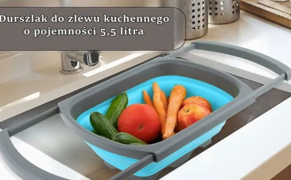 De utdragbara handtagen kan enkelt användas för att hänga durkslaget över diskhon, så att maten aldrig nuddar botten av diskhon