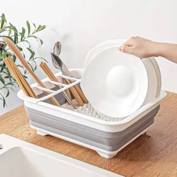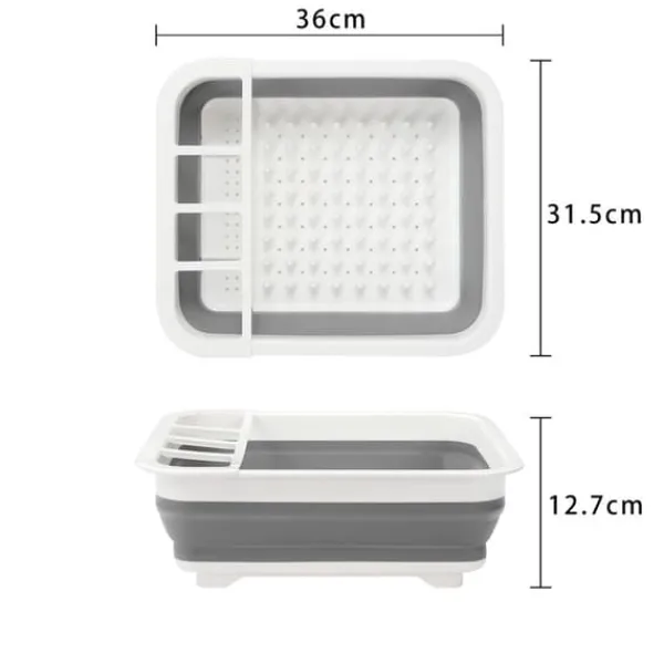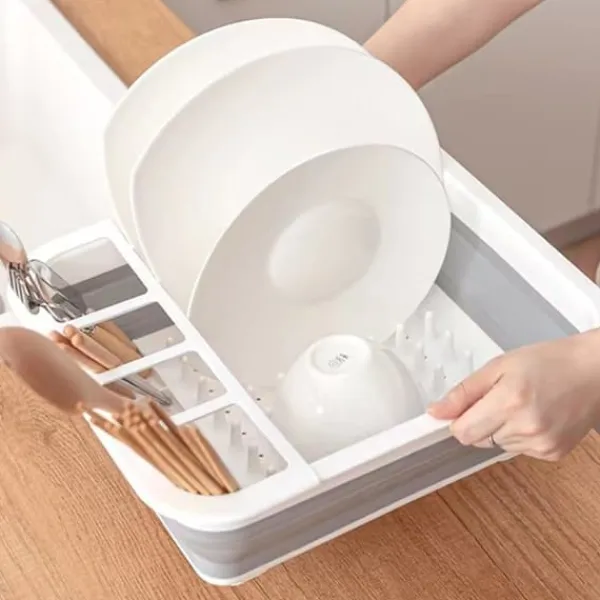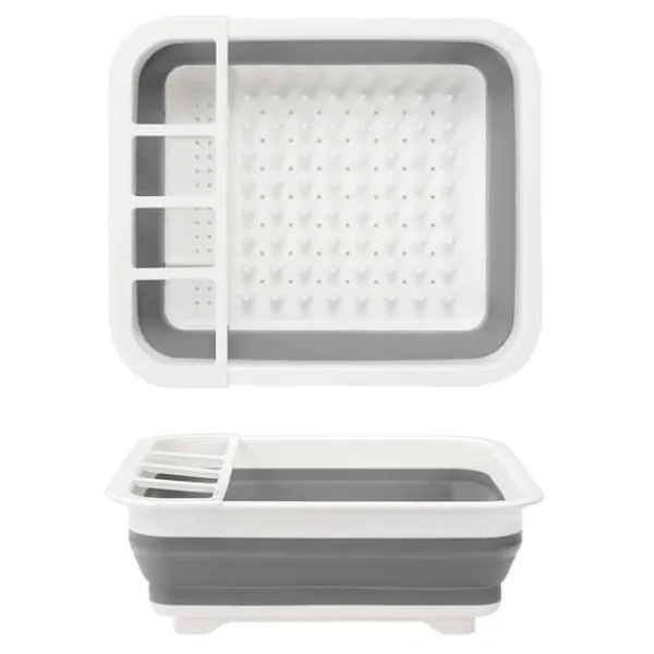 Lådan är hopfällbar, vilket mångdubblar användningsmöjligheterna och dessutom är extremt utrymmesbesparande. Den har 4 inbyggda stående sektioner där bestick och liknande föremål torkar mycket snabbt.