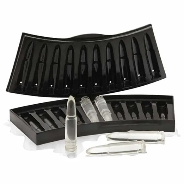 Istället för vanliga isbitar kan du med denna form göra is formad som gevärspatroner, som kyler vilken dryck som helst på nolltid! Roliga i drinkar och cocktails!