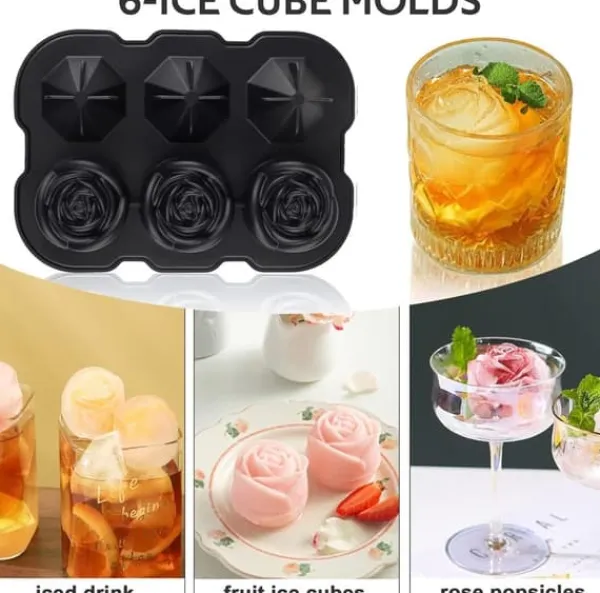 Iskubsform Vackra stora rosor och isbitsformar, gör perfekt ros, diamant isbitar som gör varje cocktail, whisky och alkoholfri dryck ännu vackrare.