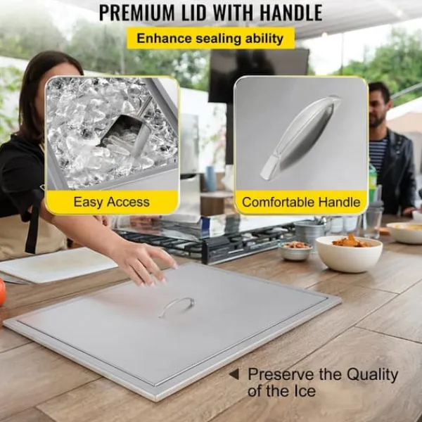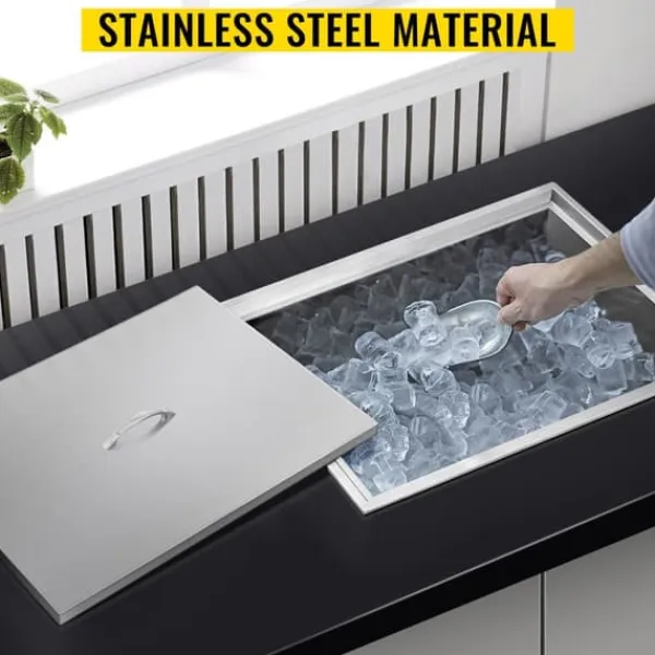-Bekväm design: Denna drop-in kylare har en 2,2-tums diameter avlopp som suger bort smält is så att dina rester alltid finns till hands. Denna kylare i rostfritt stål har en avtappningsplugg med en diameter på 4,3 tum för enkel rengöring.