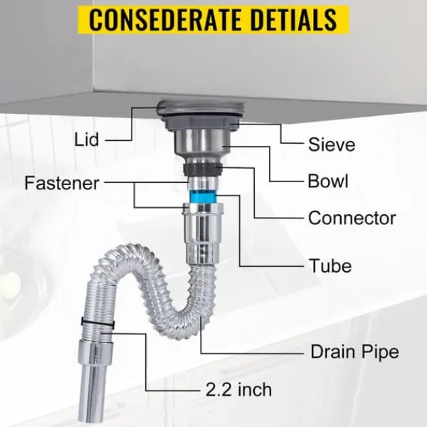 Dessutom ingår avlopp och plugg. En avloppsöppning gör att vattnet kan rinna bort. Det är lätt att städa upp. Dessutom finns en dräneringsplugg för att ansluta ett rör till avloppsvatten.