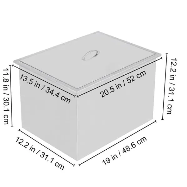 Håll dina isbitar frysta och lättillgängliga med denna drop-in islåda. Produkten är konstruerad av 304 rostfritt stålmaterial för ökad hållbarhet. Det medföljande högkvalitativa locket ger en ordentlig tätning och skyddar isbitarna från främmande föremål. Ett avlopp i botten av lådan hjälper till med dränering. Perfekt för utomhuskök, fester, resorter, barer och mer.