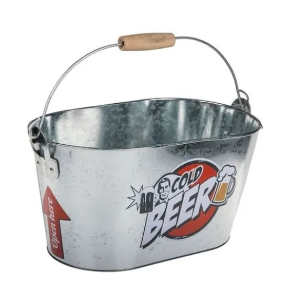 Håll ölflaskorna kalla med denna isbucket. Det är en praktisk behållare perfekt för fester. Den är utrustad med två flasköppnare i botten av varje sida av handtaget. Perfekt som present.* Dimensioner: 26 x 13 cm * Material: metall, handtag av trä * 2 flasköppnare ingår Funktioner: isbucket Innehåll: 1 Cold beer isbucket med integrerad flasköppnare