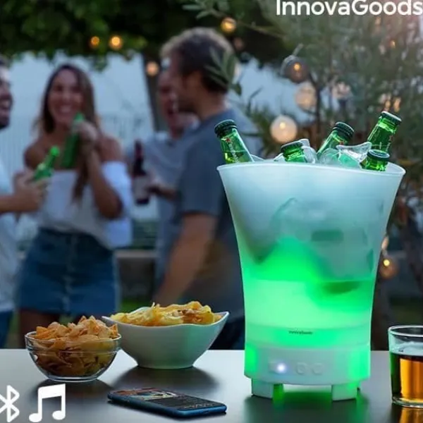 Denna LED 3-i-1 isbitshållare från EUROWEB håller dina drycker kalla samtidigt som den spelar musik. Med en design i vit PP och 7 belysningsfärger, är den perfekt för att liva upp dina fester. Mått: 24,5 x 29 x 23,5 cm. Uppladdningsbar och vattentålig, erbjuder den en batteritid på 3 till 4 timmar.