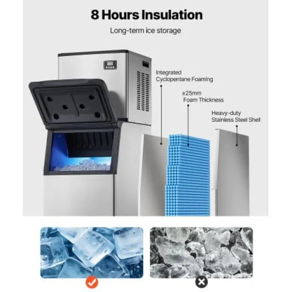 Denna kommersiella ismaskin är utformad för miljöer med hög efterfrågan såsom barer, kaféer och restauranger, och levererar en kontinuerlig tillgång på is med snabb produktion och effektiv isolering. Den intuitiva pekskärmskontrollen möjliggör enkel användning, inklusive justerbar istjocklek och en bekväm självrengöringsfunktion för att säkerställa hygienisk is vid alla tillfällen. Den robusta konstruktionen och den stora isbehållaren gör den idealisk för mångsidig kommersiell användning.