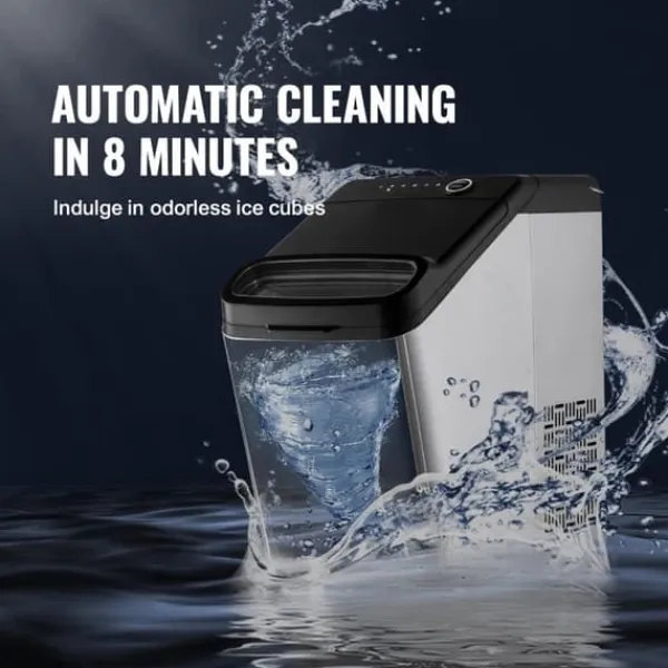 -Enastående skyddsfunktioner: Ismaskinen är självrengörande så att du inte behöver rengöra den manuellt. Denna funktion tillåter en 8 minuters sköljning för att ta bort eventuell smuts från behållaren. Tillverkad av PP-material, BPA-fri, livsmedelscertifierad.