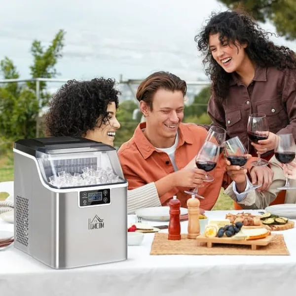– Extremt tyst: Även om vår ismaskin är mycket kraftfull, ligger ljudnivån på endast 48 dB, så den stör inte din fest, bar, husbil, campingutflykt eller kontor. Varmt tips: Den långsamma smältningen av isbitarna förbättrar smaken och ger en långvarig kylande effekt, vilket höjer kvaliteten och njutningen av dina drycker