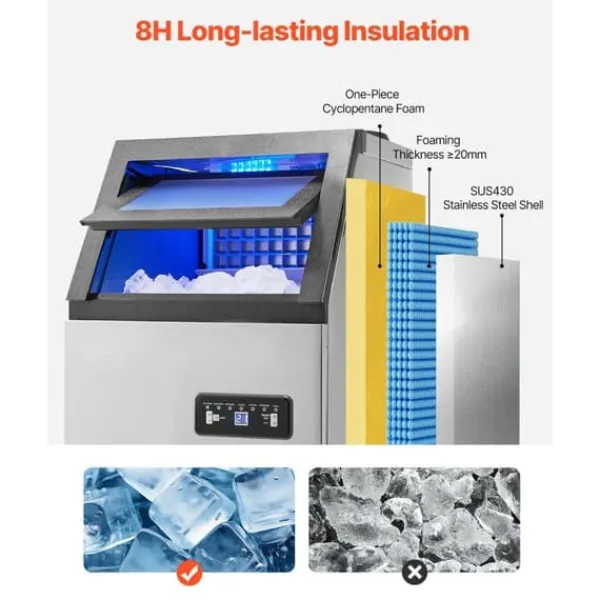 - 8 timmars isoleringskapacitet: Tjock isolering säkerställer frostiga isbitar även efter 6-8 timmars vila.