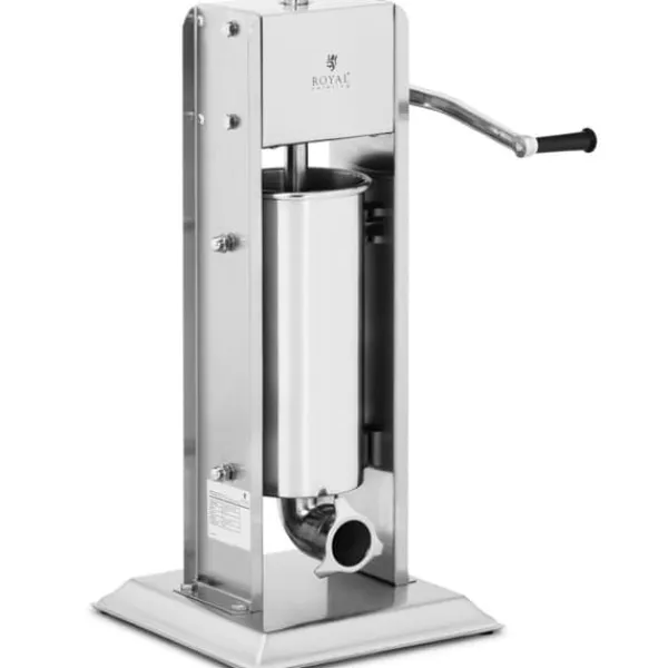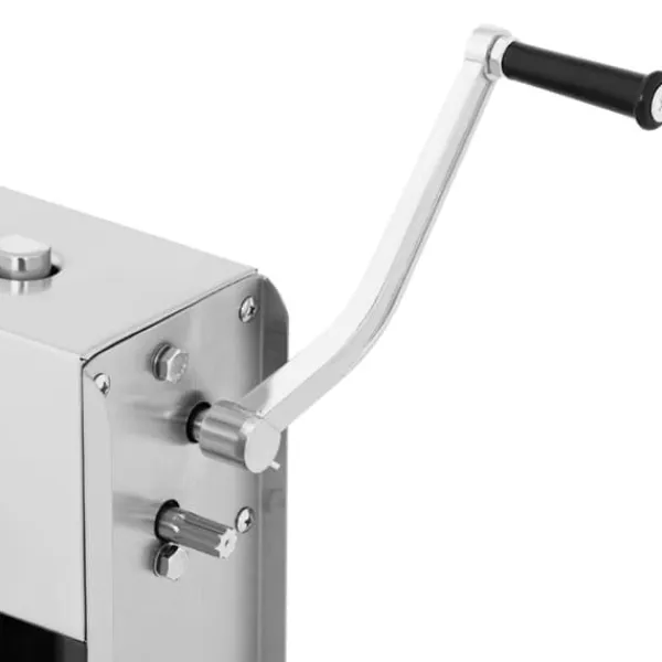 Producentkode: 10010864 Den lodrette pølsestopper fra Royal Catering er perfekt til at fylde tarmen med kødfyld for at få pølser eller andre typer pålæg i slagterbutikker, kødafdelinger i supermarkeder og til hjemmebrug. Maskinen er lavet af slidstærkt rustfrit stål, modstandsdygtig over for snavs og mekaniske skader og reagerer ikke med fødevarer. Enheden har en kapacitet på 5 liter, som er stor nok til at fylde et stort antal hylstre på én gang. Sættet indeholder 4 tragte med en diameter på 16, 22, 32, 38 mm og en længde på 27 cm, som muliggør tilberedning af pålæg i forskellige tykkelser. Det lodrette design gør, at maskinen ikke fylder meget på bordpladen. Brugen af to gear tillader påfyldning med fyld ved forskellige hastigheder. Produktegenskaber: – Nem betjening – manuel pølsepåfyldningsmaskine, – Tilbehør – 4 tragte med en diameter på 16, 22, 32, 38 mm, – Ergonomi – lodret design sparer plads på disken, – Professionalisme – kapacitet på 5 l, justerbar hastighed og cylindrisk tank med en diameter på 155 mm, – Holdbarhed – fremstillet i rustfrit stål. Tekniske parametre: – Model – RCWV-5L – Katalognummer – 10010864 – Artikeltilstand – Ny – Materiale – Rustfrit stål – Cylinderkapacitet – 5 l – Cylinderdiameter – 155 mm – Cylinderhøjde – 200 mm – Antal påfyldningstragte – 4 stk. – Hastighedsjustering – Ja – Brugervejledning – Ja – Mål (LxBxH) – 31,00 x 31,00 x 65,00 cm – Vægt – 11,40 kg – Forsendelsesmål (LxBxH) – 68,50 x 36,00 x 36,50 cm – Forsendelsesvægt 1 kg. indeholder: – Pølsestopper – Lajki – 4 stk – Håndsving – Pakning – Møtrik – Brugermanual