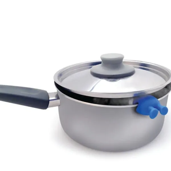 Grytvakten sätts på grytans kant för att hindra att locket åker ner. Motverkar överkokning.