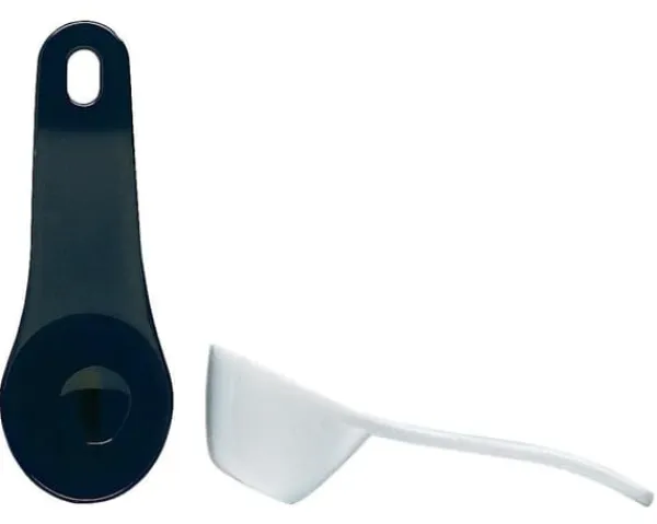 2 st kaffemått 20 ml vit + svart handtag, tillverkat av polystyrén ifrån Jonas af Sweden.