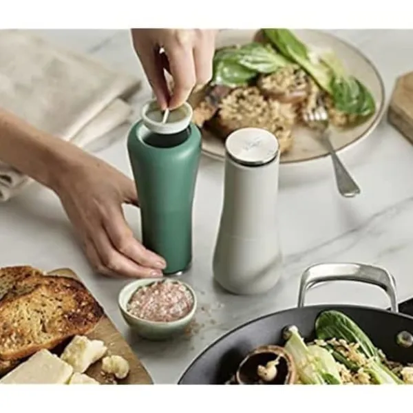 Manuella Milltop peppar- och saltkvarnar från JOSEPH JOSEPH förenar modern design och funktionalitet. Deras justerbara keramiska malverk gör det enkelt att ställa in grovleken på kornen, samtidigt som deras omvända design håller dina ytor rena. Lätta att fylla, de är perfekta för ditt kök.