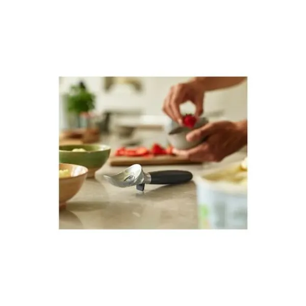 Upptäck Elevate™ glasskeden från Joseph Joseph, utformad för enkel och hygienisk servering. Med sin zinklegering motstår den även de hårdaste glassorterna. Dess ergonomiska design och integrerade stöd förhindrar kontakt med arbetsytan, vilket garanterar renlighet och användarkomfort.