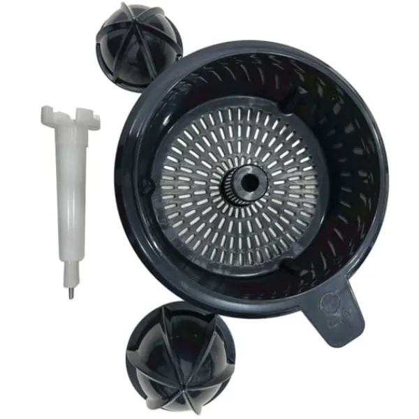 – Innehåll: 1 filterkorg, 2 tryckkoner, 1 roterande stav