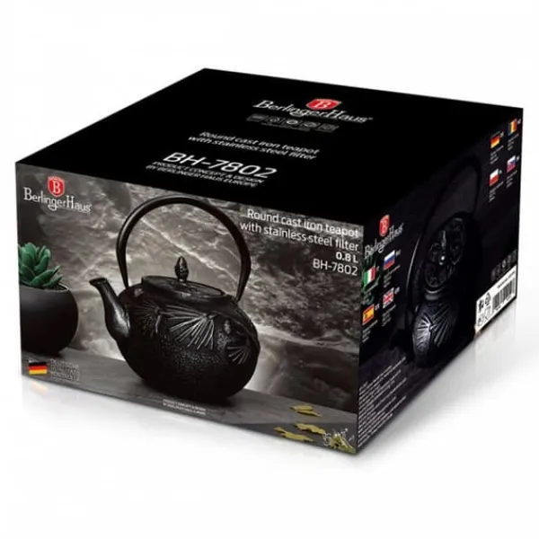 Infusionsanordning för gjutjärnskanna med filter. En produkt av märket Berlinger Haus. Det gör att du kan servera te eller brygga dina favoritörter på ett stilfullt sätt, – Tillverkat av högkvalitativt gjutjärn – Filter tillverkat av högkvalitativt rostfritt stål – Kapacitet: 800 ml – Bekvämt handtag för enkel transport – Rekommenderas INTE för diskmaskiner – Tillgängliga färger: svart