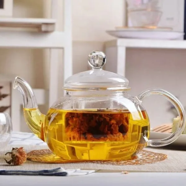 Fördelen med en glastekanna, förutom att brygga te, är möjligheten att observera bryggningsprocessen för olika tetyper, hur tebladen öppnas och teets dans. En tekanna i glas framhäver dryckens färg, är lätt att rengöra och absorberar inte heller lukt.