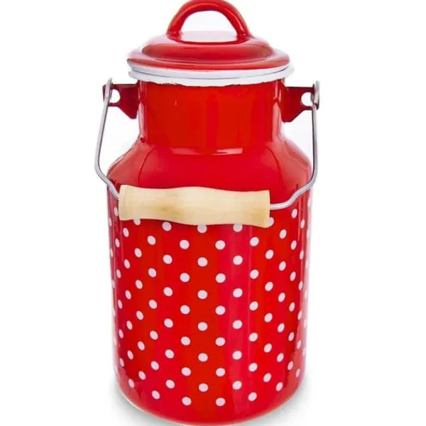 Emaljerad mjölkkanna med lock och bärhandtag. Tack vare det stora handtaget är den bekväm att använda. Denna kanna är också en utmärkt presentidé. Emaljerade köksredskap kan ha tillverkningsfel som är naturliga för denna typ av köksredskap: utbuktningar, asymmetriska tryck etc. Dessa påverkar inte produktens kvalitet eller de tillagade rätterna, utan framhäver bara den traditionella produktionsmetoden. Originalprodukt från det tjeckiska märket Orion. Tillverkad enligt europeiska standarder.