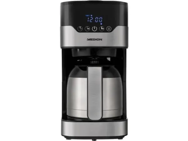 MEDION MD 18458, Droppande kaffebryggare, 1,2 l, Malat kaffe, 900 W, Svart, Rostfritt stål