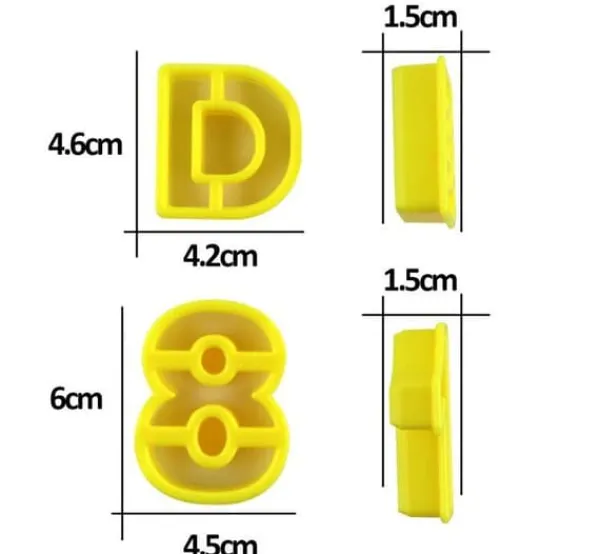 Setet med utstickare ilauke innehåller 41 stycken för att skapa bokstäver, siffror och symboler. Tillverkad av livsmedelsklassad ABS-plast, är den hållbar och lätt att rengöra. Idealisk för att dekorera tårtor och kakor, gör detta verktyg bakning roligt och kreativt. Mått: 32 x 16,7 x 3,7 cm.