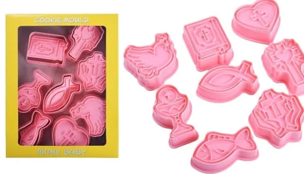 Vi presenterar ett set kakformar och sockerpastadekorationer med motivet Första heliga nattvarden. Setet innehåller formar i olika former, inklusive en kalk, en duva, en fisk, ett kors. Tillverkade av hållbar plast garanterar de tillförlitlighet och hållbarhet för många användningsområden. Varje form är cirka 6 cm stor, vilket möjliggör exakt utskärning av mönstret. Setet innehåller 8 formar, så att du kan skapa olika dekorationer med temat fordon. Var kreativ och dekorera dina bakverk på ett unikt sätt med detta professionella set med utstickare. Den perfekta lösningen för konfektyrentusiaster som vill ge sina bakverk en unik bild. Beställ idag!