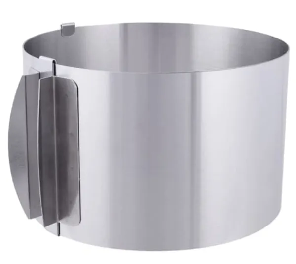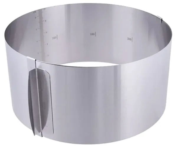 Tack vare justeringsområdet från 16 till 30 cm kan du skapa en kaka med valfri diameter med detta band. Dess höjd på 10 cm ger dig tillräckligt med utrymme för att dekorera ditt konstverk. Du behöver inte oroa dig för precision – bandet har en skala på insidan, vilket gör det enkelt att ställa in önskad diameter. Tillverkat av rostfritt stål SS430, det är extremt hållbart och lätt att rengöra.