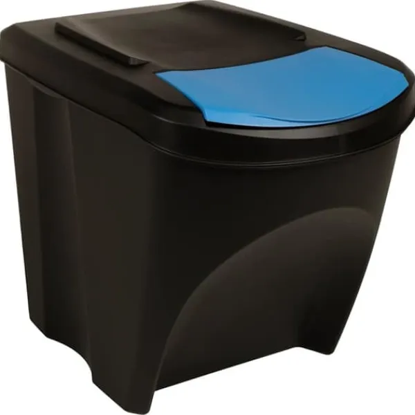 Papperskorgen är tillverkad i polypropen, vilket gör den stark, lätt och enkel att rengöra. Locket på lådan är avtagbart och möjliggör enkel och snabb rengöring. Tack vare etiketterna blir sortering av skräp enkelt. Dessutom sparar de utrymme tack vare dess stapelbara design.
