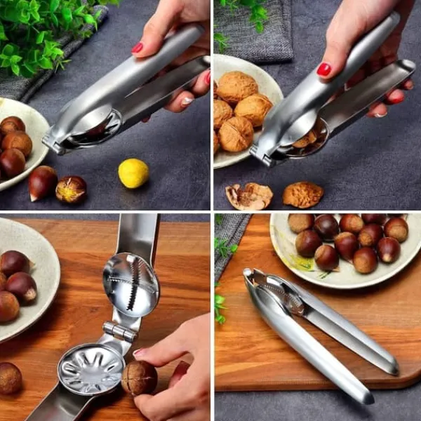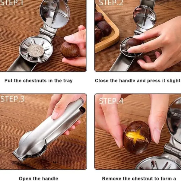 Kastanjeöppnare i rostfritt stål: Tillverkad av högkvalitativt rostfritt stål, denna multifunktionella kastanjöppnare har en tvärbladsdesign, halkfritt handtag och spakmekanism för enkel och effektiv användning. Perfekt för hemkök, bagerier och som en