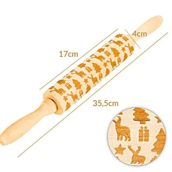 Träkavel med julmotiv (presenter, julgranar, renar) är den perfekta idén för att variera ditt hembakande särskilt under helgerna.