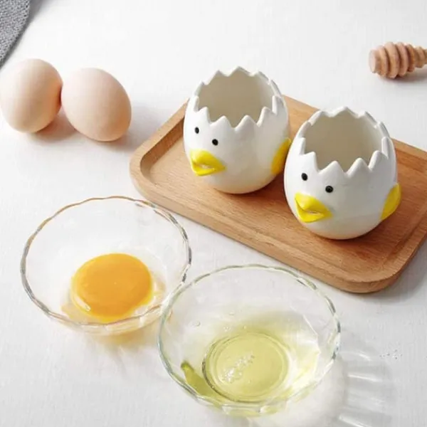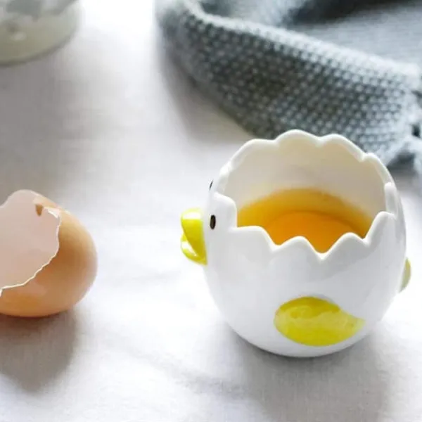 1. Ägguleseparatorn är gjord av keramik, med fin hårdhet, glansig glasyr och hållbarhet.