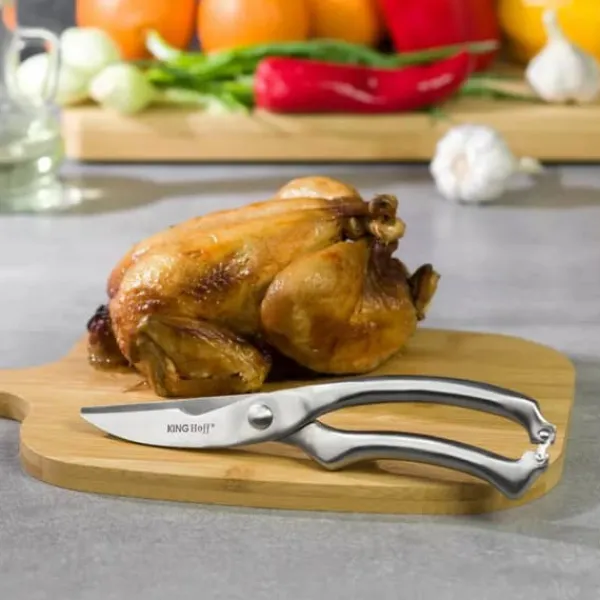 KINGHOFF kökssax för fjäderfä gjord helt av högkvalitativt rostfritt stål. De har designats för portionering av alla typer av fjäderfä. Bladet håller benen säkert medan du skär, och stängningsspärren underlättar säker förvaring. Tål diskmaskin.