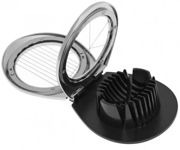 Hårdkokt äggskärare. Tack vare 2 blad gör det att du kan skära ägget i skivor eller i 6 lika delar. Vi kan snabbt förbereda ägg till smörgåsar eller sallader.