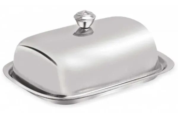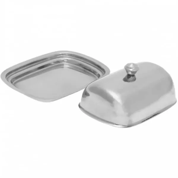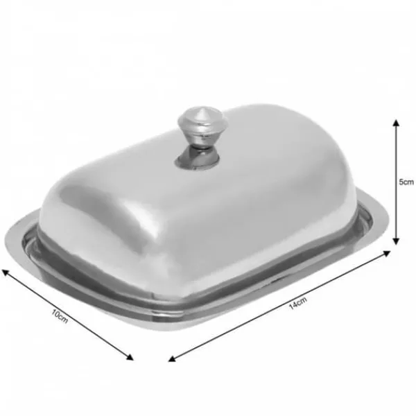 Smörform i stål med handtag i locket. Rostfritt stål, bekväm att använda och lätt att tvätta. Mått: – Smörform 15,5 x 11,5 x 1 cm; – Rostfritt stålkåpa 14 x 10 x 5,5cm