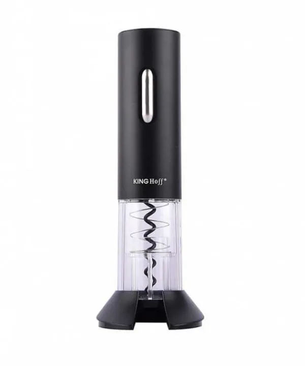 En elektrisk vinkorkskruv som enkelt kan öppna vilken korkad flaska som helst. Batteridriven. I setet ingår även en folieskärare som även fungerar som stativ. Den unika kombinationen av elegant utseende och hög kvalitet är den bästa lösningen, rekommenderad för personer som värdesätter tidlös stil. Pålitlig drift och enkel drift garanterar att du väljer utrustning som du kommer att använda under lång tid och utan några problem korkskruv drar ut korken ur flaskan med en knapptryckning.- Designad för att passa alla traditionella vinflaskor.- Tillbehör: folieskärare placerad i basen av stativet och kabel. USB.- Trådlös drift (kräver batteriladdning). – Den kännetecknas av extremt tyst drift på cirka 50 dB – Vid full batterikapacitet öppnar den upp till 50-60 flaskor på en laddning. Laddningstiden beskrivs i bruksanvisningen. Färg: svart/transparent