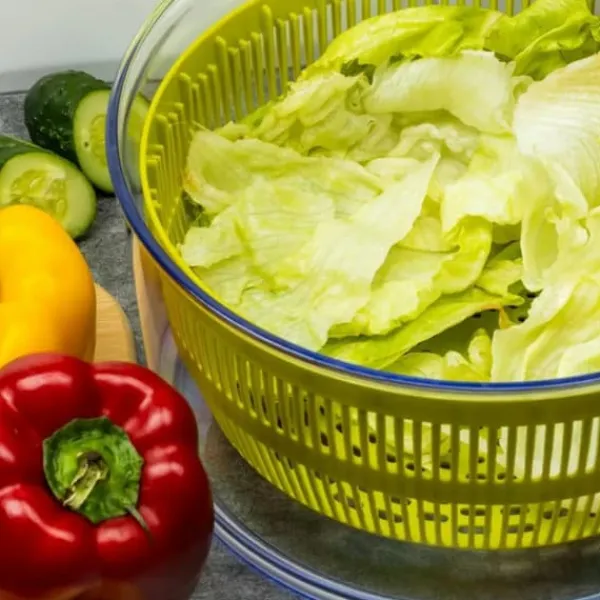En funktionell anordning för att snabbt centrifugera vatten från tvättad sallad eller andra bladprodukter: spenat, örter, persilja, ruccola etc. Centrifugerkorgen kan användas som sil för att skölja grönsaker och sila pasta. Behållaren har en tratt för att underlätta borttagning av vatten Perfekt för snabb torkning av sallad. Enkel och snabb att använda – skåldiameter: 22 cm – skåldjup: 13 cm