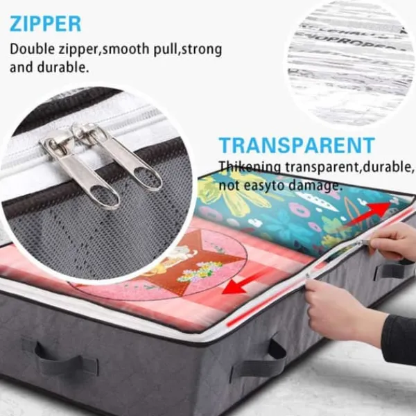 Letar du efter ett smart sätt att hålla dina saker organiserade? Maxa din förvaring med vår flexibla underbäddsförvaring. Stuva undan dina prylar smart och smidigt med vår förvaring under sängen! Perfekt för leksaker, extra sängkläder, skor eller kläder. Tillverkad i slitstarkt tyg och med ett transparent lock med dragkedja, får du enkel översikt över vad som finns i lådan.