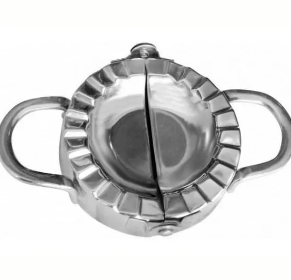 Dumplingform med en diameter p? 10 cm Dumplingformen �r en enhet med tv? funktioner. Den f�rsta funktionen �r en sk�rare med hj�lp av vilken du f�rbereder perfekta degbitar, den andra funktionen �r en kl�mma som g�r att du exakt kan sammanfoga skurna degbitar till en f�rdig dumpling med fyllning inuti. Verktyget �r tillverkat av polerat rostfritt st?l. Ett praktiskt verktyg f�r att spara tid och s�kerst�lla en perfekt och reproducerbar form p? dumplings. M?tt: 15 x 9,5 x 2,8 cm T?l maskindisk.