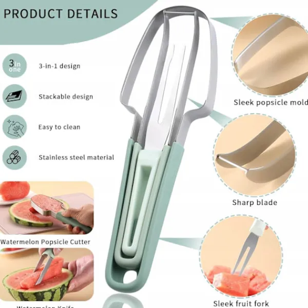 3 i 1 – multifunktionell design – vattenmelonkniv, gaffel och isbricka i ett