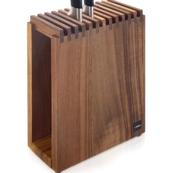 Knivställ tillverkat av naturligt trä. Det blir en extremt attraktiv dekoration för alla kök, samtidigt som det möjliggör korrekt förvaring av ett stort antal knivar. Dess moderna design gör det lämpligt för kök i både moderna och klassiska stilar. Originalprodukt från det tjeckiska märket Orion. Tillverkad i enlighet med europeiska standarder.