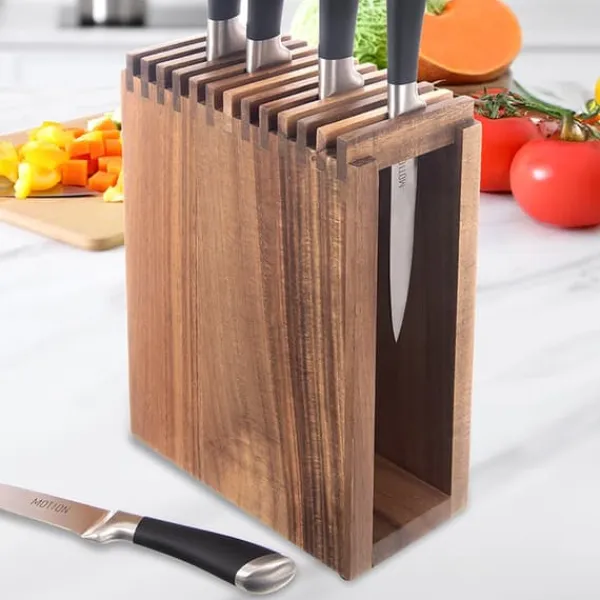 ✅ Korrekt knivförvaring – Stativet har 12 fack som gör att du kan förvara knivar av alla bladformer och saxar. Det ger en säker och praktisk plats som skyddar bladen från skador och alltid har dem inom räckhåll.