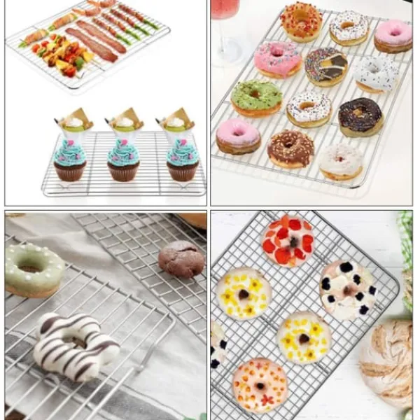 5、 Designad för att passa perfekt på en halv bakplåt. Det dubbla radstället kan användas i stor utsträckning för grillning, bakning, grillning och servering. Som det mest använda bakverktyget kan kylstället tillgodose alla dina behov, oavsett om det är köksbakning, camping eller grillning.